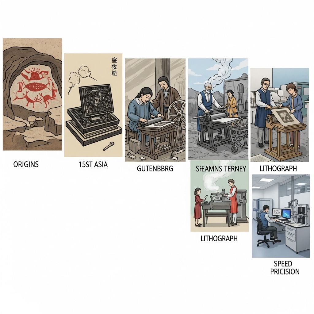 Matbaanın kökeni, Çin’de MÖ 2. yüzyıla kadar uzanır. İlk basit baskı teknikleri, mühürler ve tahta kalıplar kullanılarak yapılıyordu. 8. yüzyılda ise Çinliler, hareketli harf sistemini geliştirdi, ancak bu teknik “Geçmişten Günümüze Matbaanın Gelişimi”